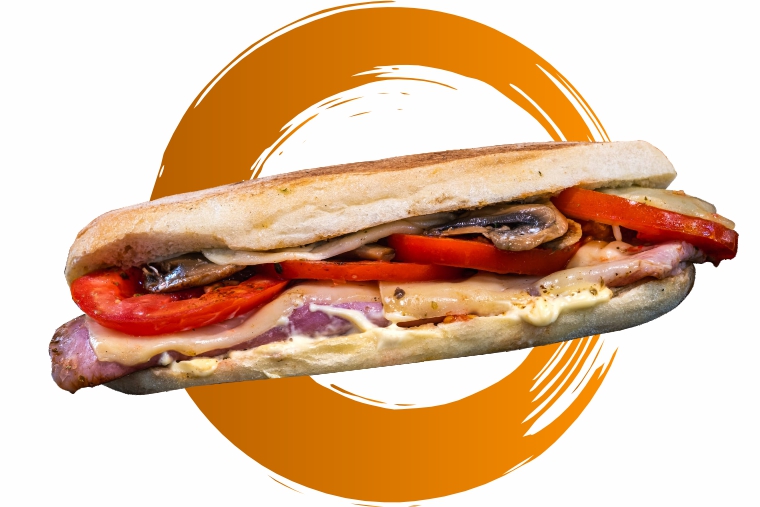 Prosciutto Cotto, Emmenthal, Funghi Freschi, Pomodoro, Sale, Origano, Maionese